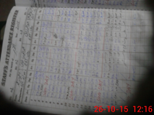 | CNIC | Full Name | Designation | R/C | Absence During Last Calender Month |