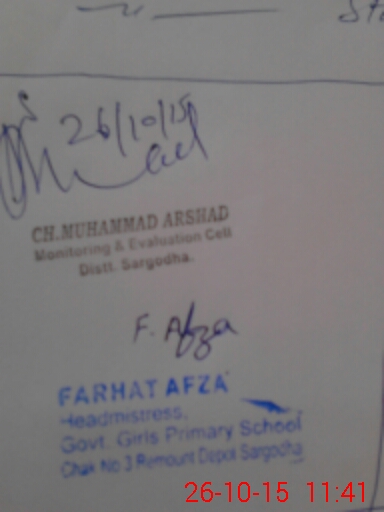 | District: SARGODHA | Tehsil: SARGODHA | Markaz: REMOUNT DEPOT - FEMALE | Level: Primary | |