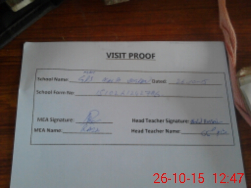 | Attendance Register | Head Teacher | MEA with School | Visit Proof |
