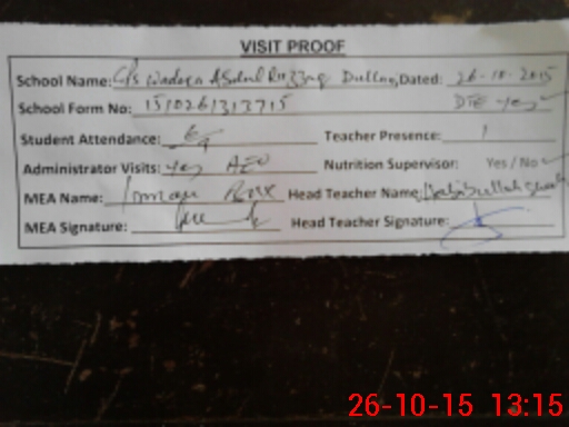 | Attendance Register | Head Teacher | MEA with School | Visit Proof |