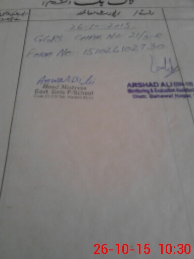 | District: BAHAWALNAGAR | Tehsil: HAROONABAD | Markaz: HND-6-FEMALE | Level: Primary | |