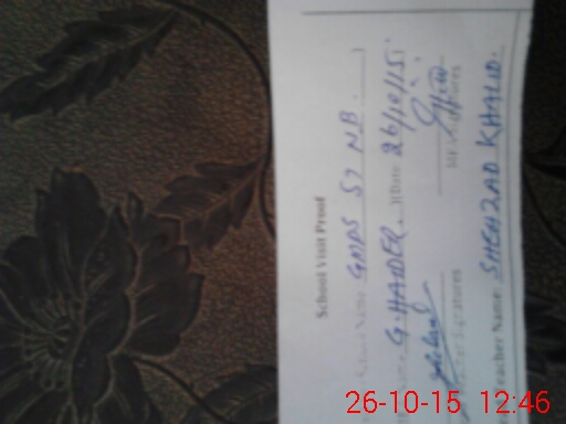 | School Visited by School Health & Nutrition Supervisor (No. of Visits) | 1 | Name1: | UNSAR HAYAT | Name2: | |