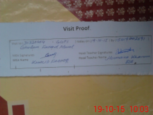 | Attendance Register | Head Teacher | MEA with School | Visit Proof |