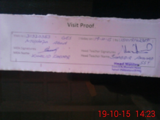 | Attendance Register | Head Teacher | MEA with School | Visit Proof |