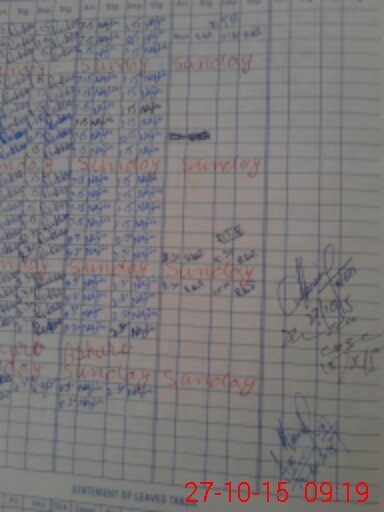 | Monitoring Date: 27-10-2015 | Start Time: 27-10-2015 09:01 AM | End Time: 27-10-2015 09:22 AM | Name of MEA: Ar**** Al**** | |