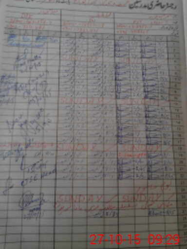 | CNIC | Full Name | Designation | R/C | Absence During Last Calender Month |