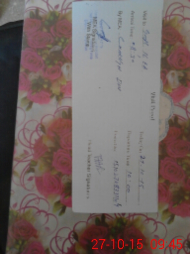 | Monitoring Date: 27-10-2015 | Start Time: 27-10-2015 08:33 AM | End Time: 27-10-2015 09:45 AM | Name of MEA: Ch**** Di**** | |