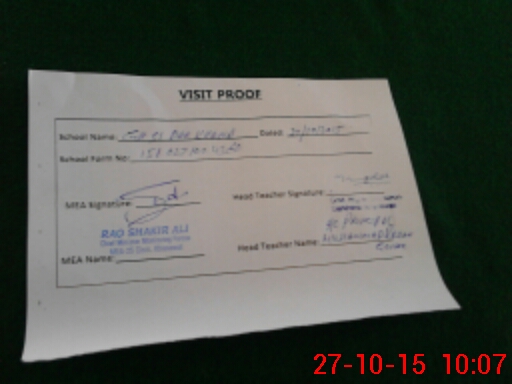 | Attendance Register | Head Teacher | MEA with School | Visit Proof |