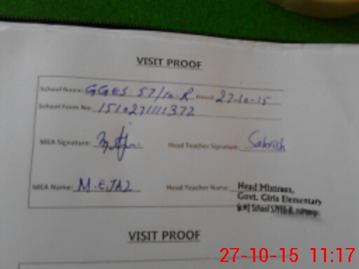 | Attendance Register | Head Teacher | MEA with School | Visit Proof |