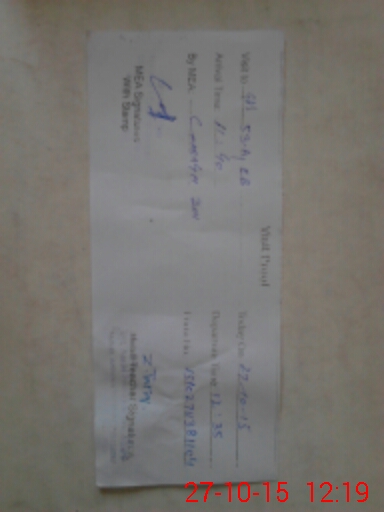 | Monitoring Date: 27-10-2015 | Start Time: 27-10-2015 11:38 AM | End Time: 27-10-2015 12:20 PM | Name of MEA: Ch**** Di**** | |