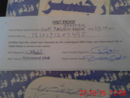 | Attendance Register | Head Teacher | MEA with School | Visit Proof |
