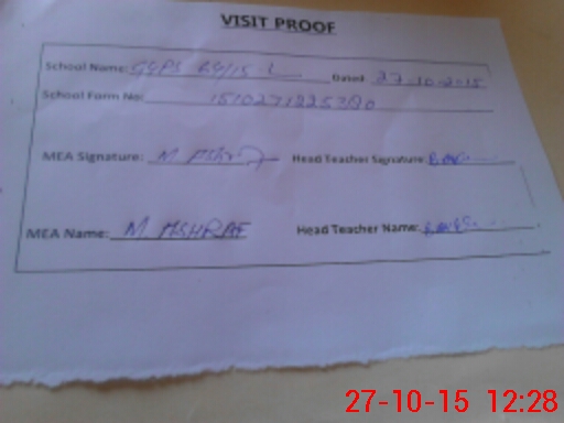 | Attendance Register | Head Teacher | MEA with School | Visit Proof |
