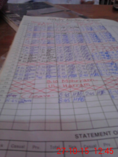 | CNIC | Full Name | Designation | R/C | Absence During Last Calender Month |