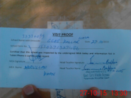 | Attendance Register | Head Teacher | MEA with School | Visit Proof |