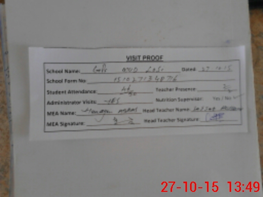 | Attendance Register | Head Teacher | MEA with School | Visit Proof |
