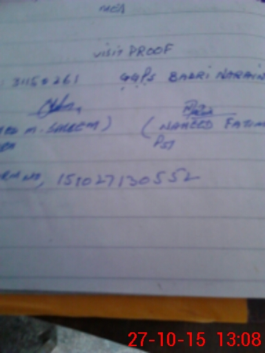 | Monitoring Date: 27-10-2015 | Start Time: 27-10-2015 12:26 PM | End Time: 27-10-2015 01:10 PM | Name of MEA: Mu**** Sa**** BN**** 33 | |