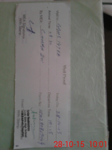 | Monitoring Date: 28-10-2015 | Start Time: 28-10-2015 08:29 AM | End Time: 28-10-2015 10:05 AM | Name of MEA: Ch**** Di**** | |