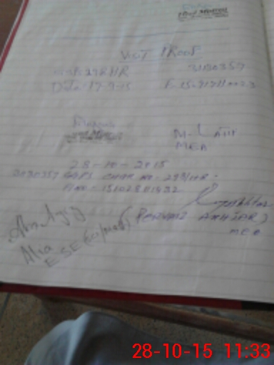 | Monitoring Date: 28-10-2015 | Start Time: 28-10-2015 11:13 AM | End Time: 28-10-2015 11:34 AM | Name of MEA: Pe**** Ak**** BN**** 12 | |