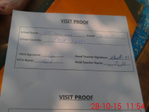 | Attendance Register | Head Teacher | MEA with School | Visit Proof |