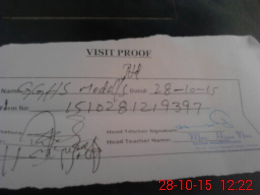 | Name: Me**** Ih**** Designation: (School Headmaster's/Headmistress's) Snr H M Phone/Cell Number: 03**** |