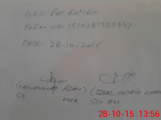 | Name: MU**** NA**** Designation: (School Headmaster's/Headmistress's) SSE Phone/Cell Number: 03**** |