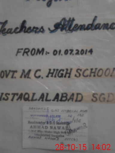 | EMIS Code: 38420025 | Name of School: GHS MC ISTAQLAL ABAD SARGODHA | |||