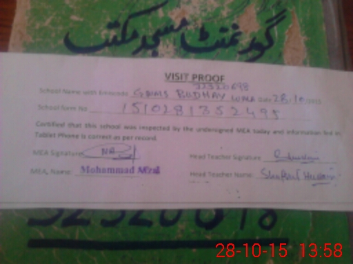 | Attendance Register | Head Teacher | MEA with School | Visit Proof |