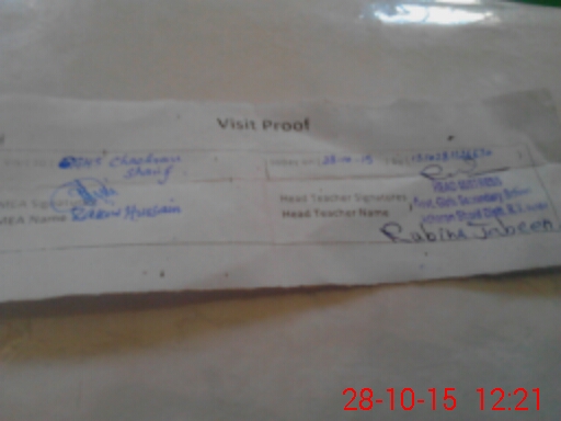 | School Visited by School Health & Nutrition Supervisor (No. of Visits) | 1 | Name1: | Mohammad Javed Iqbal | Name2: | Nil |