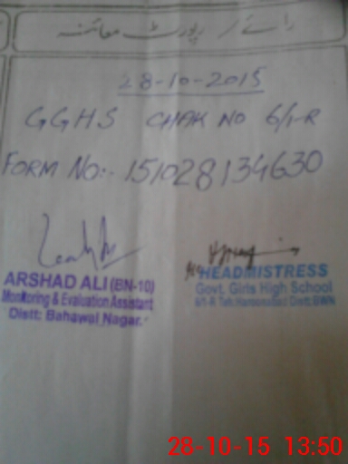 | EMIS Code: 31140073 | Name of School: GGHS CHAK NO 6/1-R | |||