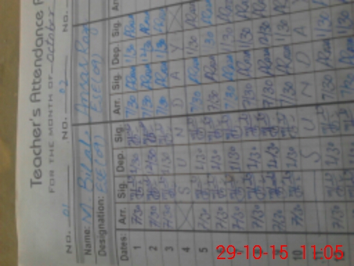 | Monitoring Date: 29-10-2015 | Start Time: 29-10-2015 10:58 AM | End Time: 29-10-2015 11:12 AM | Name of MEA: M.Ak**** Al**** | |