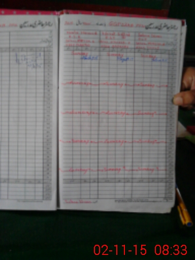 | CNIC | Full Name | Designation | R/C | Absence During Last Calender Month |