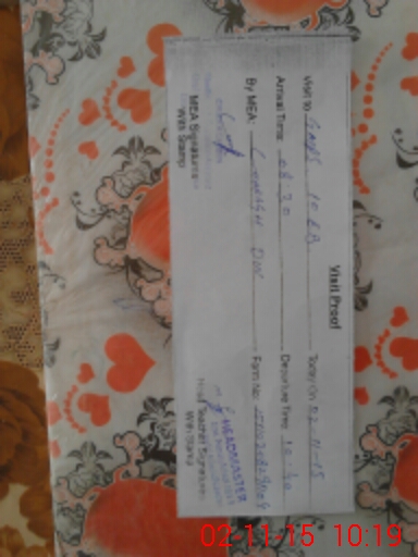 | Monitoring Date: 02-11-2015 | Start Time: 02-11-2015 08:29 AM | End Time: 02-11-2015 10:21 AM | Name of MEA: Ch**** Di**** | |