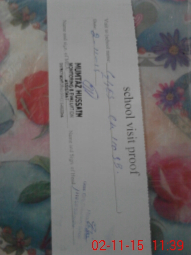 | School Visited by School Health & Nutrition Supervisor (No. of Visits) | 1 | Name1: | MUZAKAL HUSSAIN | Name2: | |
