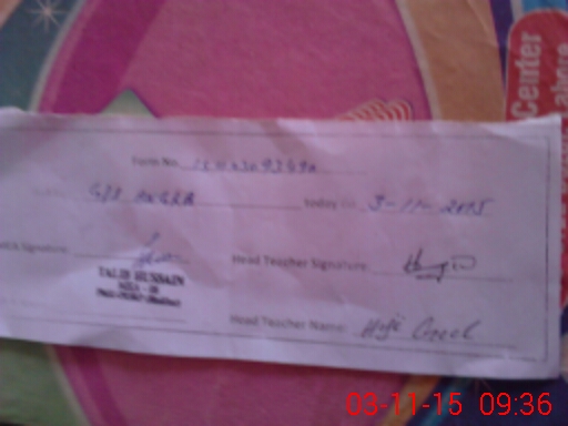 | Name: AS**** IQ**** Designation: (School Headmaster's/Headmistress's) PST Phone/Cell Number: 03**** |