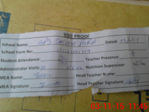 | Attendance Register | Head Teacher | MEA with School | Visit Proof |