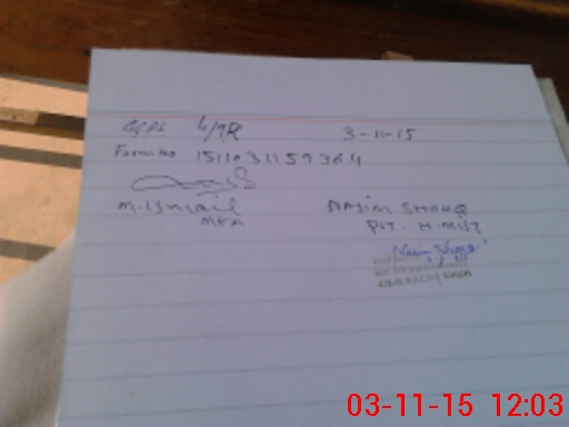 | Monitoring Date: 03-11-2015 | Start Time: 03-11-2015 11:50 AM | End Time: 03-11-2015 12:04 PM | Name of MEA: Z.**** M.Is**** | |