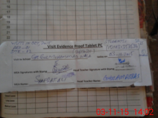 | Attendance Register | Head Teacher | MEA with School | Visit Proof |