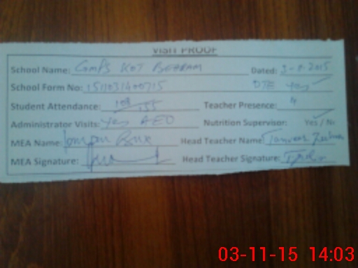 | EMIS Code: 32430175 | Name of School: GGPS KOT BEHRAM | |||