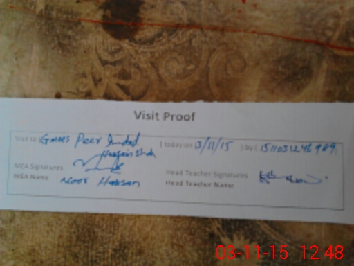 | Attendance Register | Head Teacher | MEA with School | Visit Proof |