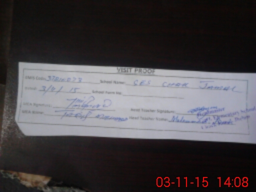 | Attendance Register | Head Teacher | MEA with School | Visit Proof |