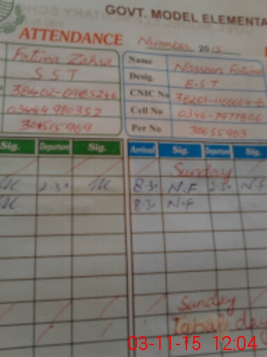 | CNIC | Full Name | Designation | R/C | Absence During Last Calender Month |