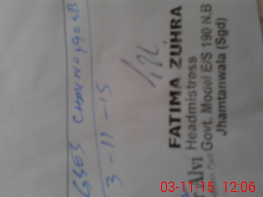 | EMIS Code: 38420714 | Name of School: GGES CHAK NO.190 NB JHAMAT WALA | |||