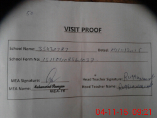 | Attendance Register | Head Teacher | MEA with School | Visit Proof |
