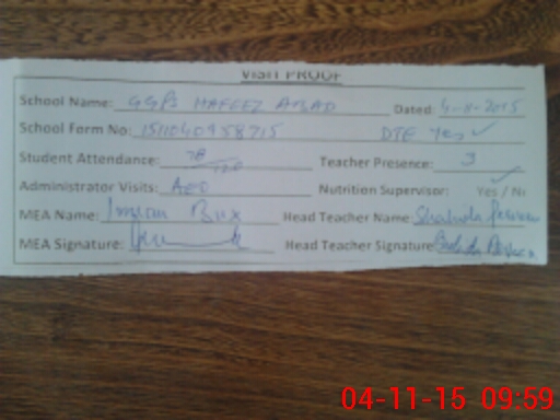 | Attendance Register | Head Teacher | MEA with School | Visit Proof |