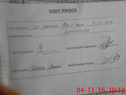 | Attendance Register | Head Teacher | MEA with School | Visit Proof |