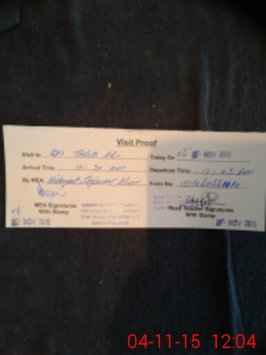 | Monitoring Date: 04-11-2015 | Start Time: 04-11-2015 11:44 AM | End Time: 04-11-2015 12:04 PM | Name of MEA: Hi**** Al**** Kh**** (R**** | |