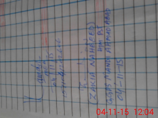 | Monitoring Date: 04-11-2015 | Start Time: 04-11-2015 11:39 AM | End Time: 04-11-2015 12:07 PM | Name of MEA: RI**** AH**** ZA**** (R**** | |