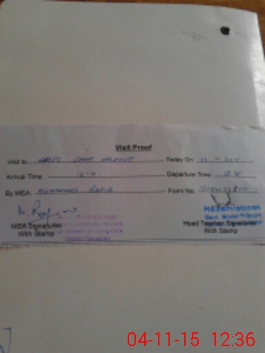 | Attendance Register | Head Teacher | MEA with School | Visit Proof |