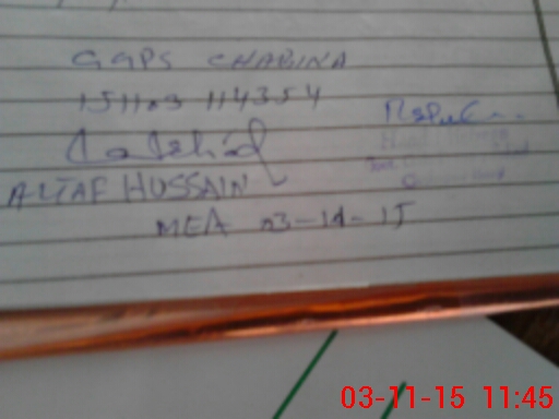 | Monitoring Date: 03-11-2015 | Start Time: 03-11-2015 10:37 AM | End Time: 03-11-2015 11:46 AM | Name of MEA: Al**** Hu**** BN**** | |