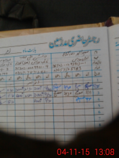 | CNIC | Full Name | Designation | R/C | Absence During Last Calender Month |